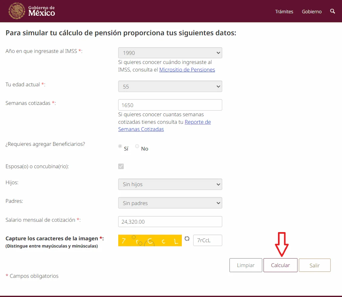 El resultado es únicamente orientativo, no sustituye ni tiene validez para el trámite oficial de pensión ante el IMSS.