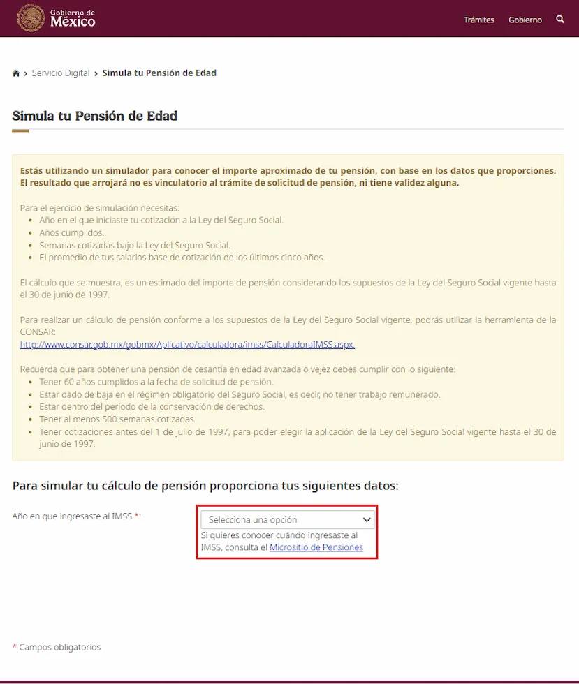 El resultado del simulador del IMSS es únicamente informativo y no constituye una resolución oficial. El monto final de la pensión será determinado por el IMSS al momento de realizar el trámite, conforme a la Ley del Seguro Social vigente.