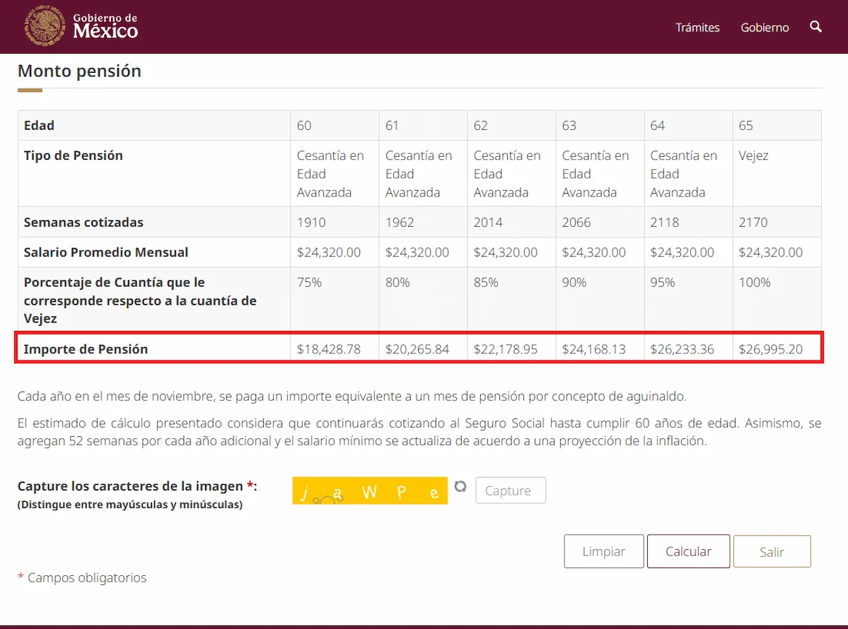 El resultado asume que continuarás cotizando al IMSS.